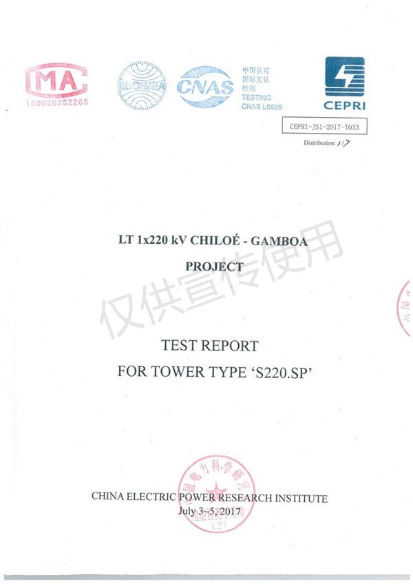 Informe de prueba de carga de torre de celosía de 220kv Chile