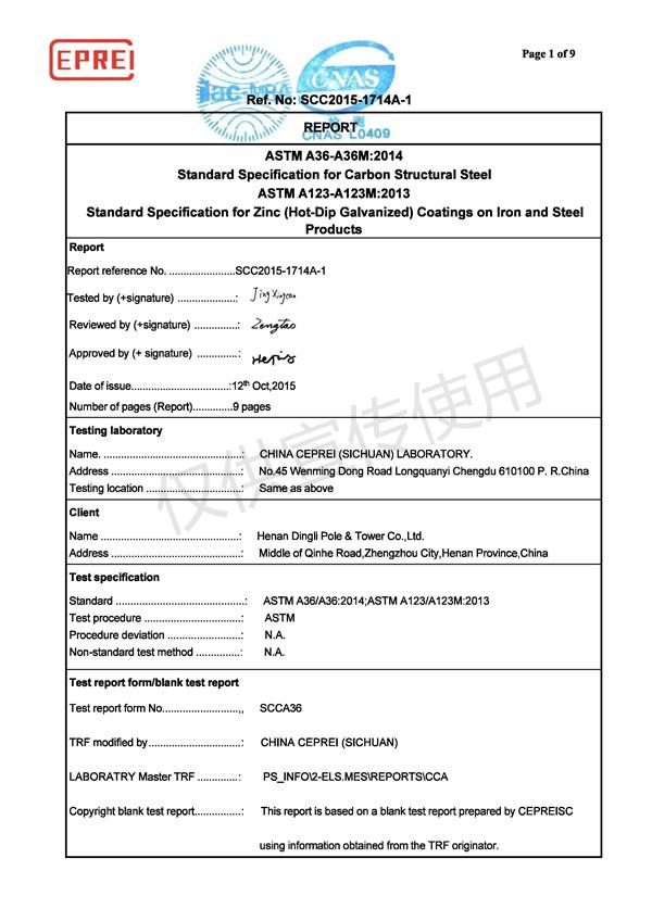 Informe de prueba ASTM material, soldadura y galvanizado