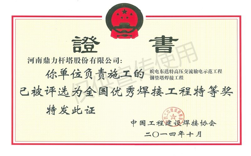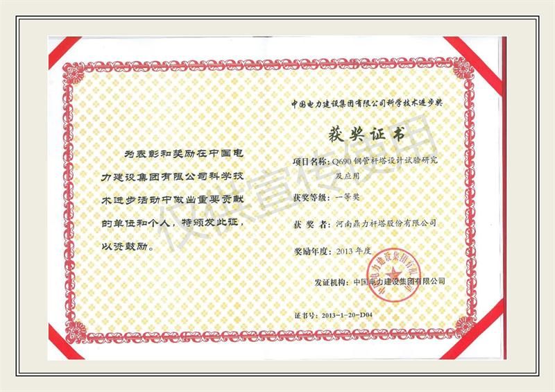 Primer premio para el diseño y la aplicación de la torre tubular de acero Q690