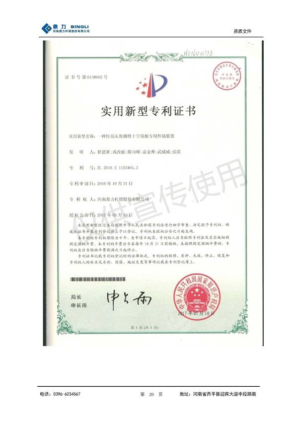 Patente de soldadura de placa de relleno de torre de acero de celosía UHV